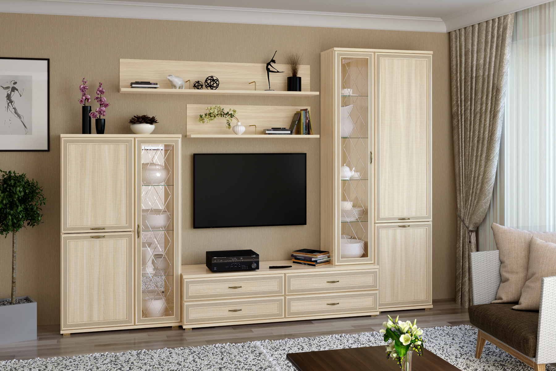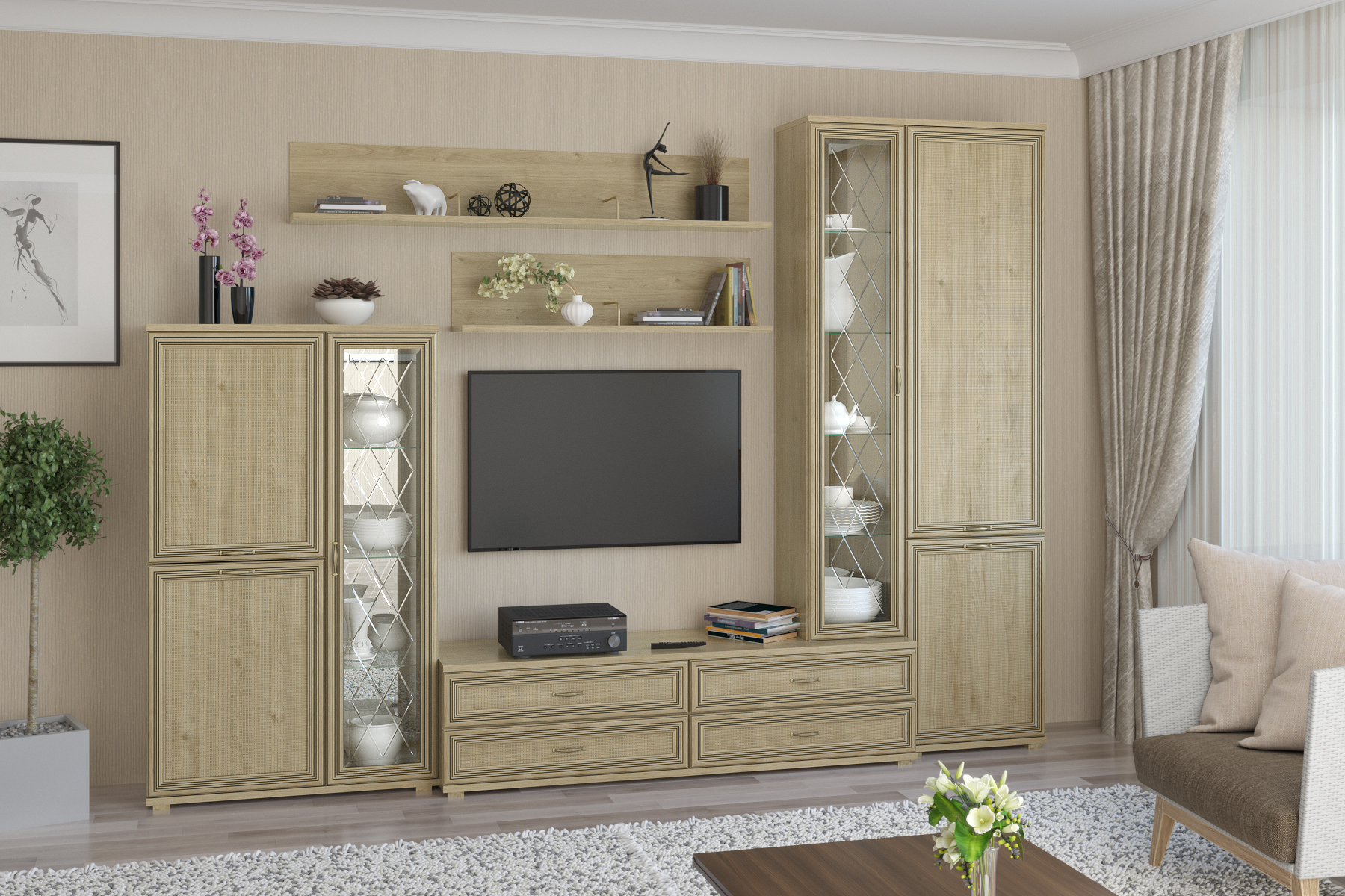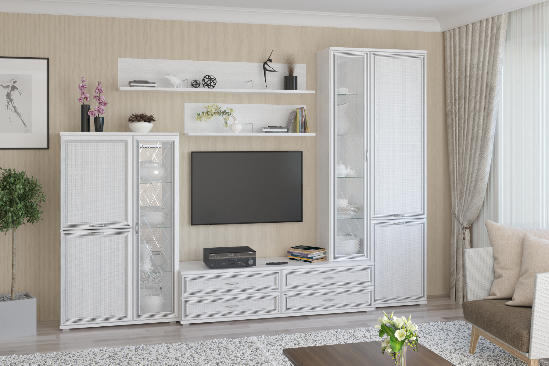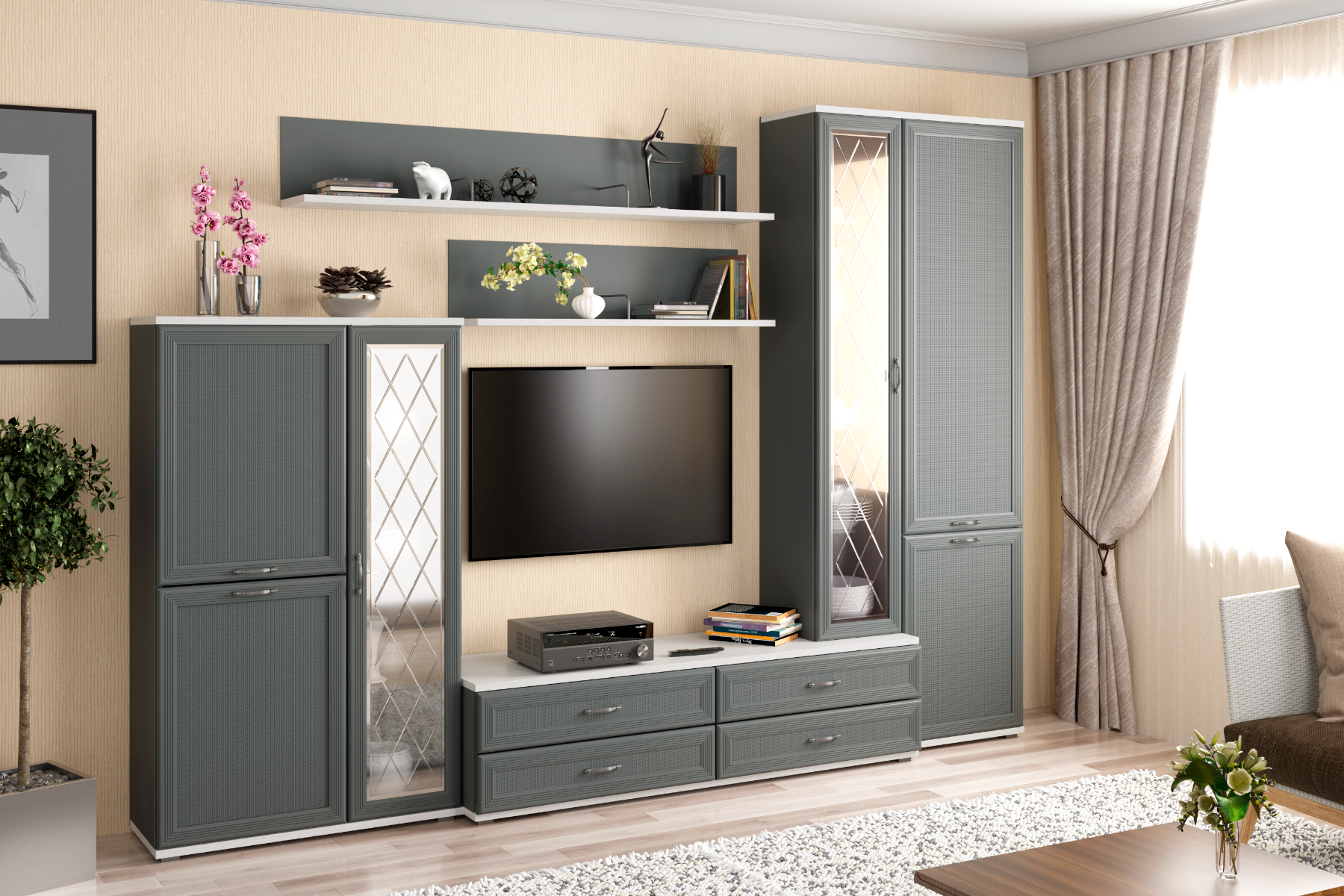 Карина - композиция 12. Цвет Снежный ясень + Серый Оникс, Ясень Асахи + Серый Оникс, Гикори Джексон светлый + Серый Оникс, Джексон темный + Серый Оникс, Гикори Джексон темный, Снежный ясень, Ясень Асахи, Гикори Джексон светлый, Серый Кашемир