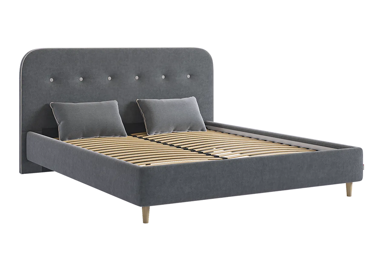 Эта двухспальная кровать легко адаптируется к любому дизайну интерьера, создавая уютное пространство для отдыха. Легкость в уходе обеспечивается возможностью чистки с помощью робота-пылесоса, а мягкое изголовье предоставляет дополнительный комфорт и безопасность.