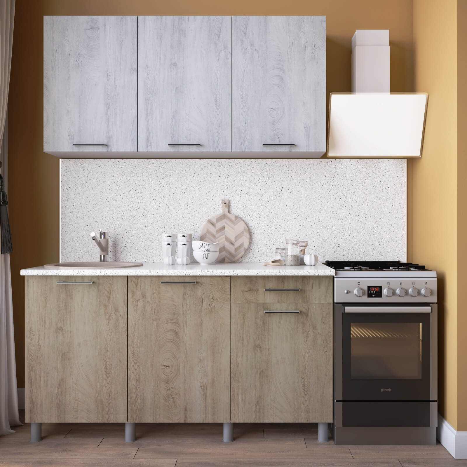 "Палермо Готовое решение" 1,5 м дуб сонома/дуб остин серый/дуб остин бежевый, белый/дуб остин серый/дуб остин бежевый