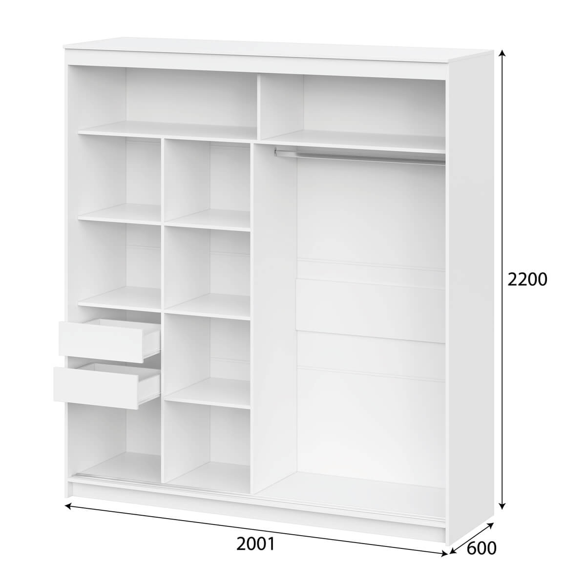 ширина 2000, высота 2200, глубина 600